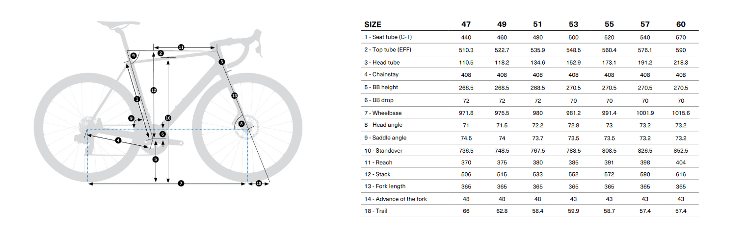 Rama Orbea Orca carbon OMX 2024, monocoque construction, HS 1,5″, BB 386mm, powermeter compatible, Rear Thru Axle 12x142mm, thread M12x2 P1, internal cable routing. Widelec Orbea Orca OMX ICR 2024, full carbon, 1-1/8″ – 1,5″ tappered head tube compatible, Thru axle 12x100mm, thread M12x2 P1. Stery FSA 1-1/2″ Integrated Aluminium Cup Mechanizm korbowy Shimano 105 R7100 36x52t with left side 4iiii Powermeter Manetki Shimano Di2 R7170 Kaseta Shimano 105 R7100 11-34t 12-Speed Przerzutka tył Shimano 105 Di2 R7150 Przerzutka przód Shimano 105 Di2 R7150 Łańcuch Shimano M7100 Kierownica OC Road Performance RP11 Carbon, Reach 80, Drop 125, w/Di2 hole Mostek OC Road Performance RP10, -8º Hamulce Shimano R7170 Hydraulic Disc Koła Oquo Road Performance RP45LTD, carbon Mini Hook rim, 45mm profile, Zipp Cognition VS2 hub, 21mm internal width, Sapim CX-Ray spokes, 700C Opony Vittoria Corsa N.Ext G2.0 Foldable 700x28c Oś przedniego koła Orbea Thru Axle 12x100mm M12x2 P1 Lite Oś tylnego koła Orbea Thru Axle 12x142mm M12x2 P1 Lite Sztyca OC Performance XP10-S Carbon, 27.2mm, Setback 20 Siodło Fizik Vento Antares R3 Kium Rail 140mm Owijka Lyzard DSP 2.5mm GEOMETRIA